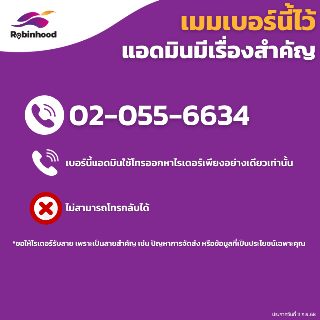 ✅ เบอร์นี้แอดมินใช้โทรออกหาไรเดอร์เพียงอย่างเดียวเท่านั้น