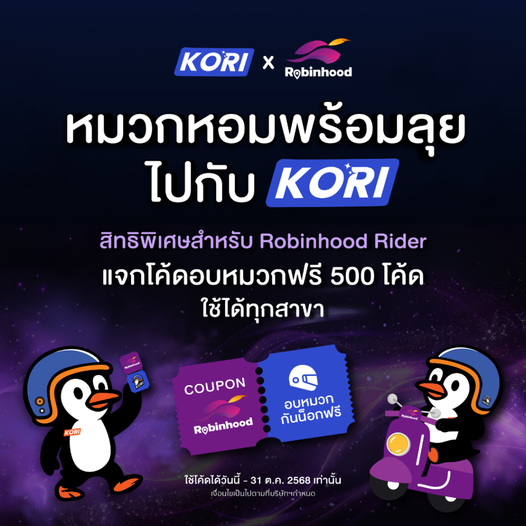 สิทธิพิเศษสำหรับ Robinhood Rider แจกโค้ดอบหมวกฟรี 500 โค้ด ใช้ได้ทุกสาขา