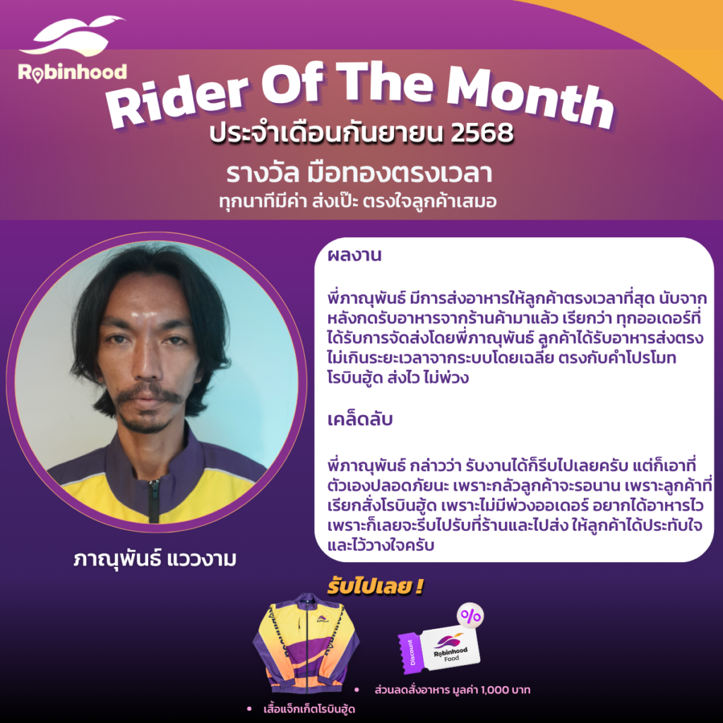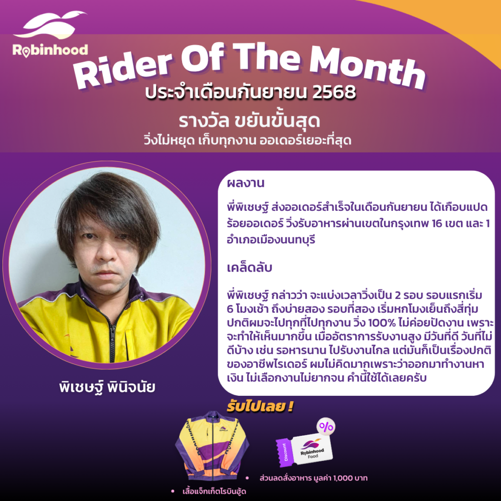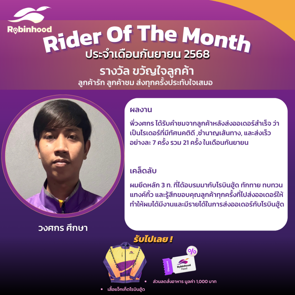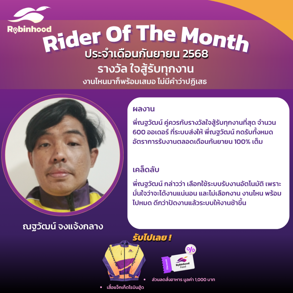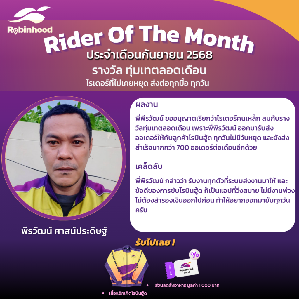 ประกาศรางวัล Rider Of The Month ประจำเดือนกันยายน 2568