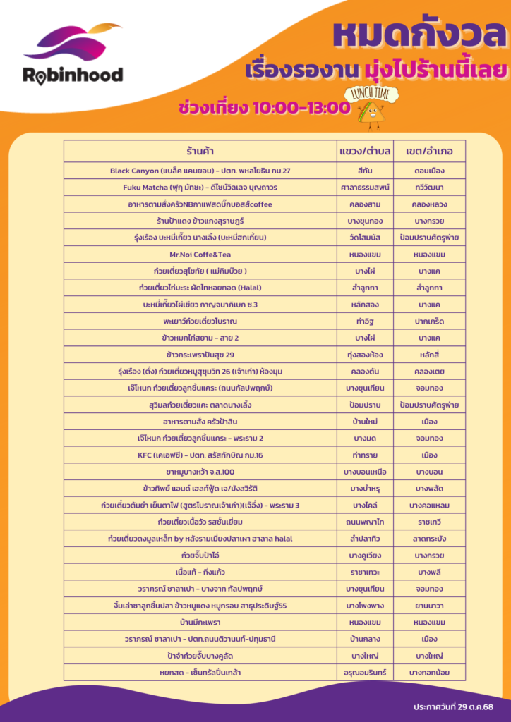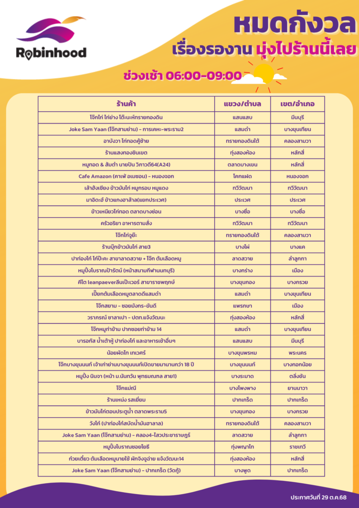 จัดให้ 3 ช่วงเวลา เช้า เที่ยง เย็น ร้านที่ยังขาดไรเดอร์รับงาน
